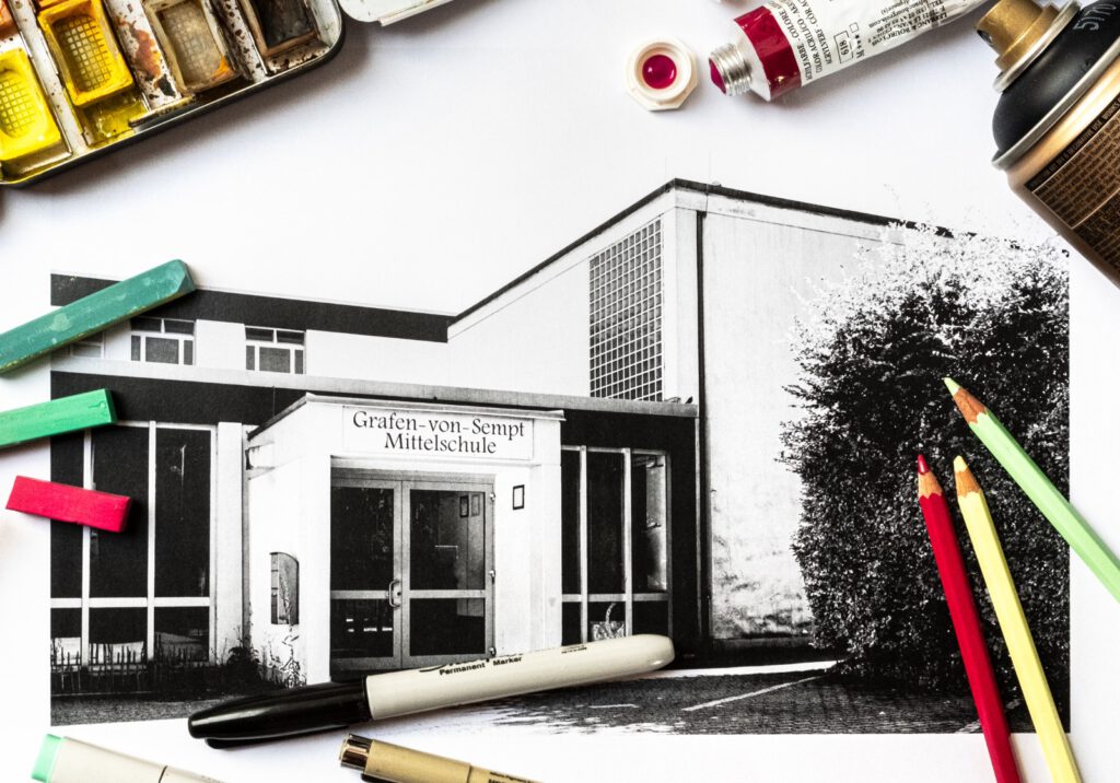 Vom 9. bis 22. September 2024 erlebte Markt Schwabens alte Mittelschule ein einzigartiges Kunst-Event. Da das 60 Jahre alte Gebäude im Herbst abgerissen werden soll, erhielt der Aktivkreis KUNST & KULTUR die Möglichkeit, zwei Wochen lang Klassenzimmer, Garderoben, Flure, Treppenhäuser, Turnhallen und Außenfassaden künstlerisch umzugestalten und für kulturelle Veranstaltungen umzuwidmen.