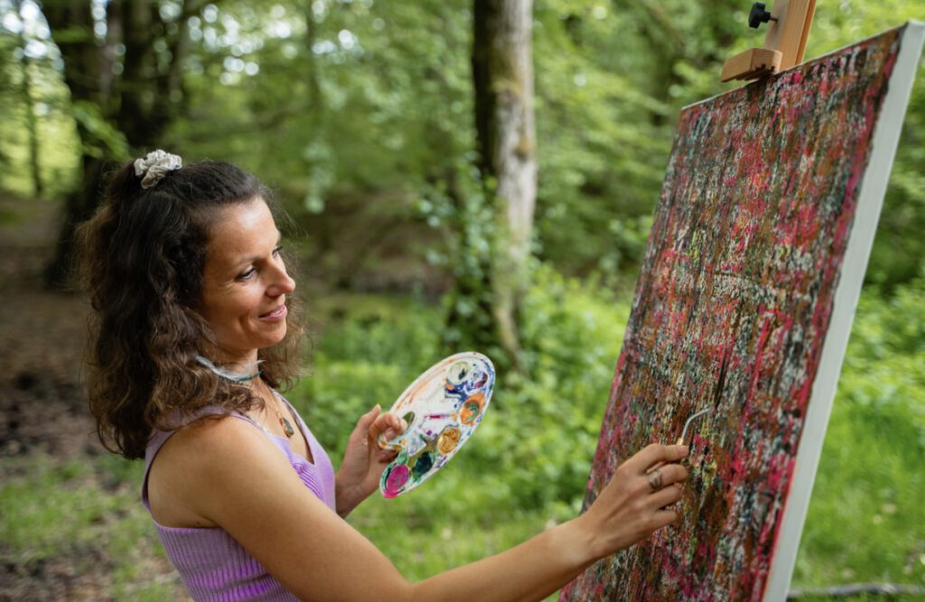 Geführte Farbenmeditation, intuitives und freies Malen auf Leinwand.